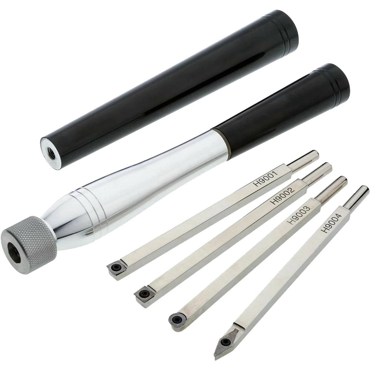 Ideal for the beginner and expert alike, this 6-piece set is a perfect balance of versatility and performance. Centered on the primary collet mount tool handle, it includes four carbide insert tool holders that are quick and effortless to swap out of the tool-free 1/4β knurled collet. The tool holders have carbide inserts which will always keep you turning with a sharp edge – once the edges become dull simply rotate the carbide inserts to a fresh, sharp edge.