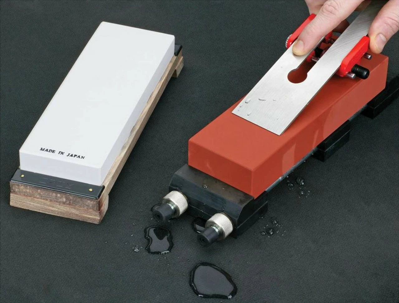 Woodworkers of all skill levels are turning to Japanese water stones to keep their tool edges sharp. This is because water stones cut more aggressively, and a sharp edge can be achieved much faster. Water stones also polish as they hone, allowing a mirror finish without the need for stropping or polishing compounds. Only water is needed to lubricate the cutting edge. 800 grit and overall size is 2-9/16″ x 8-1/8″ x 7/8″.