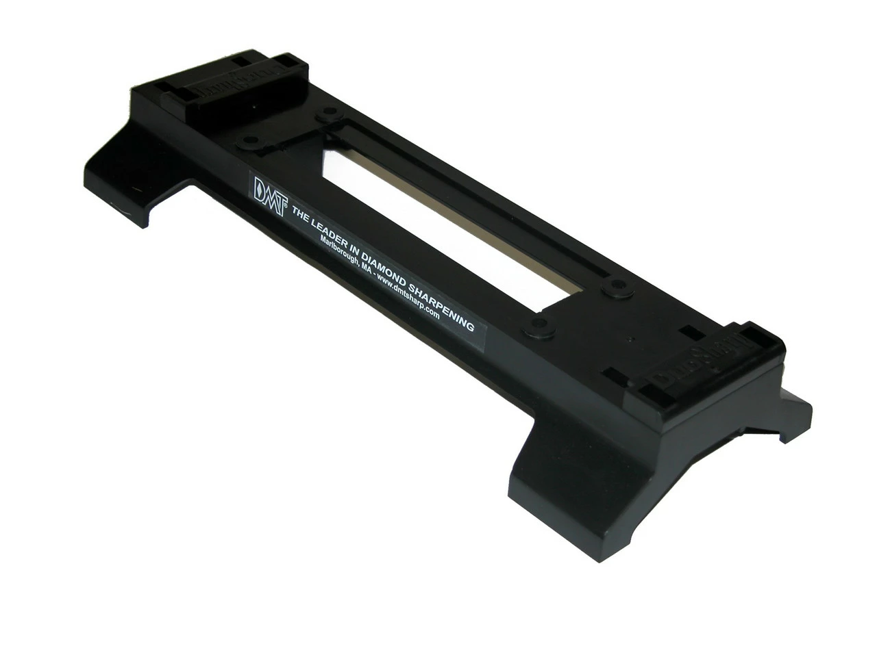 The DuoBase Bench Stone accessory can be used with all DuoSharpยฎ Bench Stones or any 6″ x 2″ stone. The base provides 2″ knuckle clearance for ease of use and includes rubber feet to secure the base and stone to the workbench or counter. It also features a convenient handle on the underside for moving the stone over a large workpiece for maximum versatility. Complete with a durable construction that will provide years of consistent performance and reliable service professionals rely on the superior quality and versatility of DMTยฎ products for proper tool maintenance. Made in the USA.