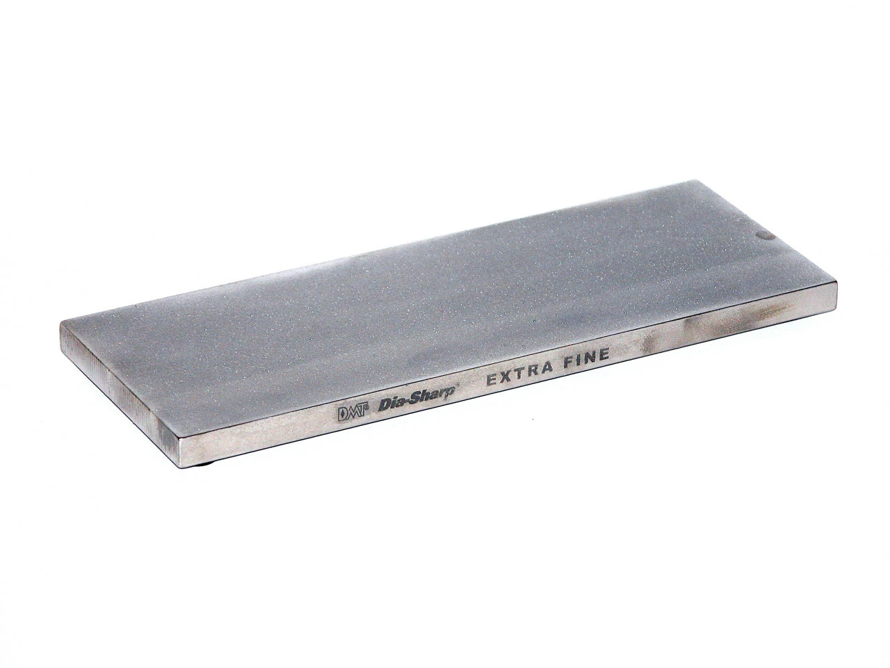 Guaranteed not to hollow or groove, DMT’s precisely engineered Dia-Sharpยฎ Bench Stone with continuous diamond surface assures consistent, even sharpening every time. The 8-in. length is ideal for a variety of knives and tools, providing cutting-edge performance for edge repair and honing. Also, a great alternative to power grinding, you won’t have to worry about ruining the temper of your tools with Dia-Sharpยฎ Bench Stones. Perfect for flattening plane soles, irons, and chisel backs as well, there is little the Dia-Sharpยฎ Bench Stone can’t handle. This particular model comes equipped with extra-fine diamond (9 micron / 1200 mesh) to polish and refine a razor edge after sharpening with a coarser diamond. Also includes non-skid rubber feet with the diamond grit clearly marked on side of the stone. Thanks to its micronized monocrystalline diamond surface as well, you can sharpen edges faster and easier than conventional stones can. No messy oils are needed either, allowing you to sharpen dry or with water. Complete with a durable construction that will provide years of consistent performance and reliable service, professionals rely on the superior quality and versatility of DMTยฎ products. Made in the USA.