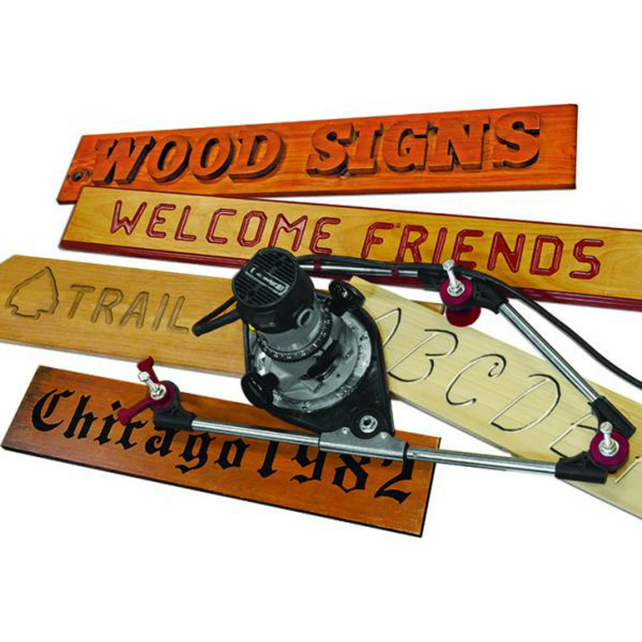 Trace along any letter stencil or line drawing, while your router makes the same cut at a 50% reduction